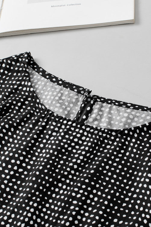 Black Dotted Puff Sleeve Top