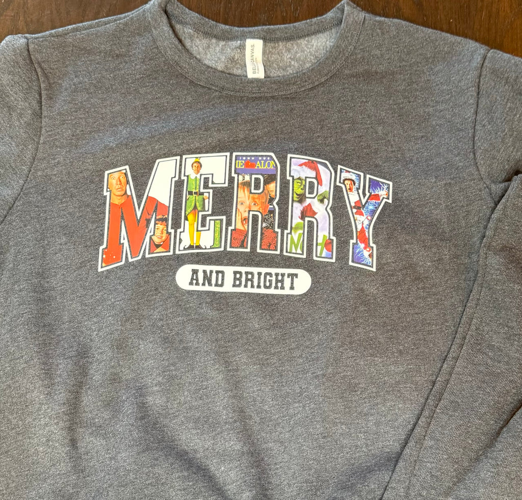 Adorable shorter Bella Canvas Sweatshirt with all the classic Christmas movies!!